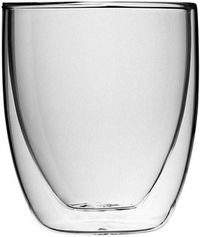 Glasklarer Cappuccino-Becher, zweiwandig, edle kompakte Optik, Glas-in-Glas Ausführung, doppelwandige Glasbecher. Ihr Logodruck kann 1-farbig oder mehrfarbig auf die Becher gedruckt werden.