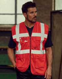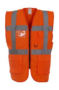 - Sicherheitsweste mit Reflektorstreifen quer und längs auf Vorder- und Rückseite
