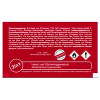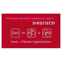 Die neue und praktische Erweiterung unserer klassischen Bestseller-Handhygienetücher, jetzt mit 2-1-Funktion für Hand- + Flächendesinfektion. Desinfiziert in 30 Sekunden. Ihr Motiv wird 4-farbig auf die Sachets gedruckt – Bestens für empfindliche Haut geeignet, reinigt auch Oberflächen, Tastaturen, das Lenkrad oder Griffe und Arbeitsflächen. Ihr personalisierter Hygieneartikel. Für die individuelle Gestaltung steht bei diesem Streuartikel die gesamte Vorderseite zur Verfügung. Die Rückseite beinhaltet die gesetzlich vorgeschrieben Inhaltsdeklaration. Reinigt, erfrischt und wirkt gegen Keime und Viren. Europäisches Qualitätsprodukt. Durch die Haltbarkeit von 2 Jahren nach erfolgter Produktion, kann dieser Werbeartikel lange eingesetzt werden.