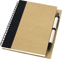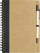 Notizbuch mit Deckel aus Recyclingkarton, 60 Blatt liniertem Recyclingpapier und passendem Stift. Das Notizbuch und der Stift sind zusammen verpackt.