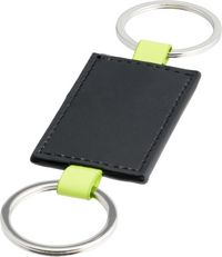 Art. SIP-8511810903Lederimitat Schlüsselanhänger mit farbigem Rahmen. Inkl. 2 Metall Schlüsselringen und schwarzer Geschenkverpackung.