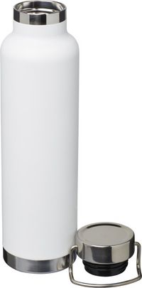 Robuste, langlebige und doppelwandige Isolier-Sportflasche. Inhalt 650 ml. Mit Kupfer-Vakuum Isolierung. Hält Ihr Getränk für 48 Stunden kalt und für 12 Stunden heiss. Mit Qualitäts-Pulverbeschichtung. Die doppelwandige Konstruktion verhindert die Kondensation an der Aussenseite der Flasche. Auslaufsicherer Edelstahl-Schraubverschluss mit Edelstahl-Handschlaufe. Mit weiter Ausgussöffnung für leichtes Befüllen und Ausgiessen. Inhalt 650 ml. Geeignet für ein Ihre grossflächige, mehrfarbige Werbedekoration. Optional mit Volltonfarben oder Lasergravur veredelt. Senden Sie uns Ihren Veredelungswunsch und Ihre Angaben für das detaillierte Angebot. Attraktive Grundfarbenauswahl, mit weisser, roter, navyblauer, limettengrüner, grauer oder schwarzer Pulverbeschichtung.