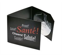 Art. SINO-FALDie Original DropStop-Weinausgiesser als repräsentatives Werbegeschenk, fertig konfektioniert und eingelegt in der individuell bedruckten Faltkarte.